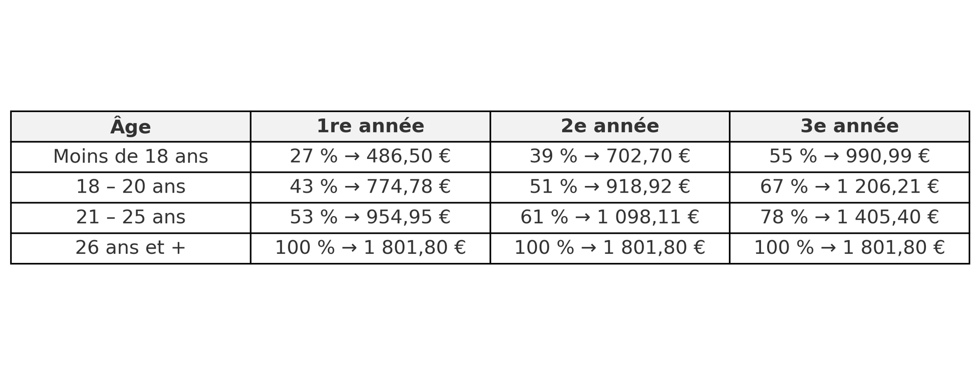 Mais...vous connaissez les petits astérisques en bas des contrats ? Et bien, ici, c'est pareil ! Deux petites informations sur l'âge et votre position dans le cycle de formation sont à prendre en compte.